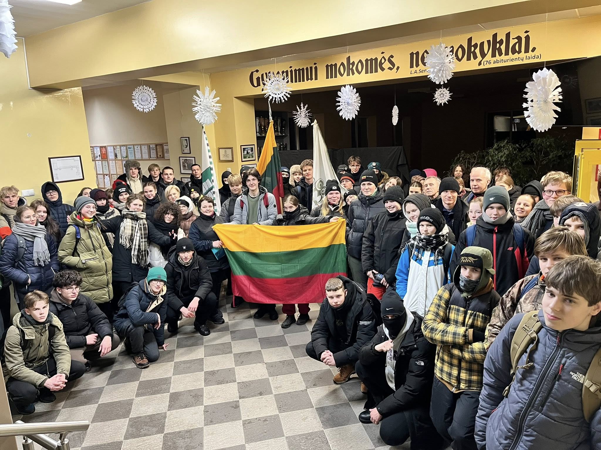 Dalyvavome tradiciniame 25-ajame naktiniame žygyje „Klaipėdos sukilėlių keliais”. Naktinis žygis Klaipėdos sukilėlių keliais, snieguotais takais, miškais ir palei jūrą paliko neišdildomus įspūdžius – himno giedojimas spaudžiant žiemos šalčiui, draugo petys šalia, nuotaikų ir tikri kalneliai ir nuokalnės,  upeliai su rąstiniais tilteliais, šaltis, košė ir karšta arbata prie laužo trečią valandą ryte, pajūris su tolyje šviečiančiais laivais ir stingdantis kaulus šaltas vėjas bei neapsakomas džiaugsmas įveikus ne tik 25 kilometrus, bet ir save. Ėjo 8 mokytojai ir beveik 100 gimnazistų.