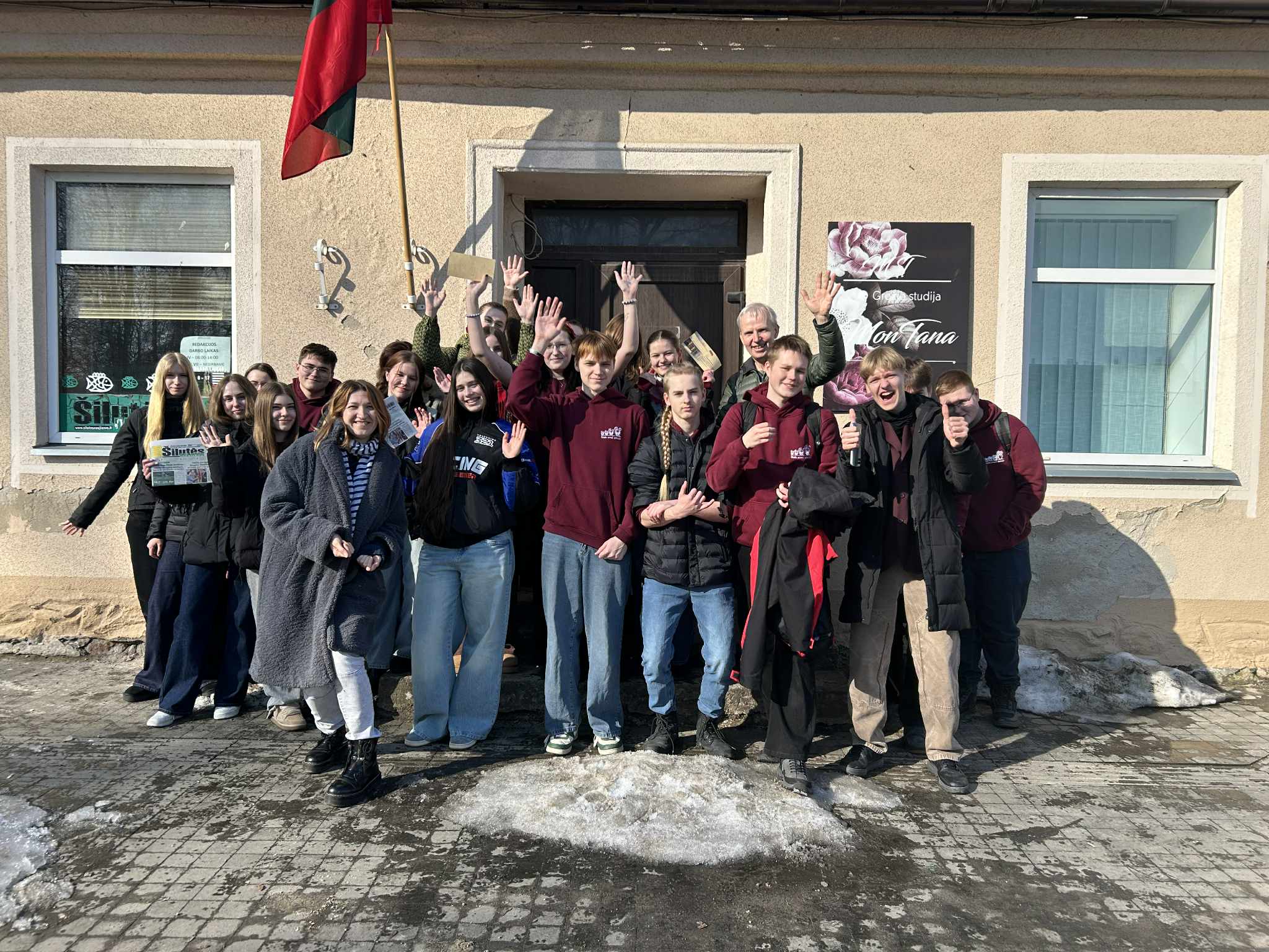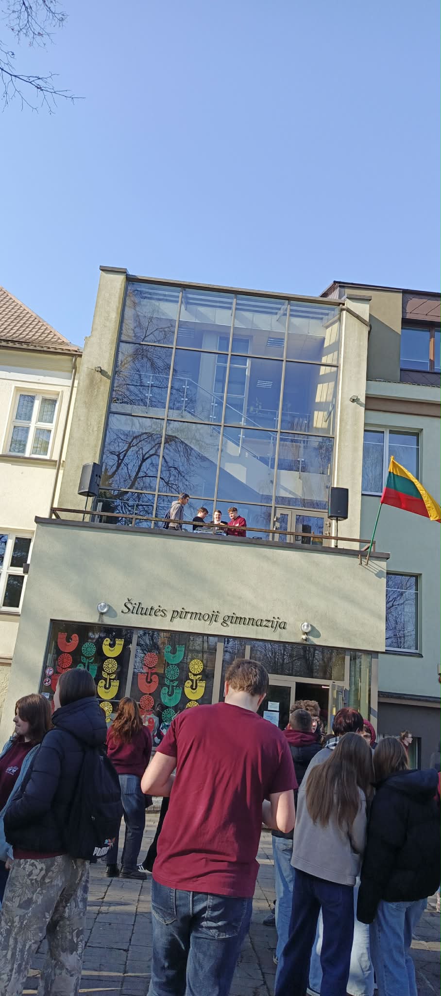 Kaip ir kiekvienais metais, taip ir šiemet, iškilmingai sugiedoję himną Lietuvos nepriklausomybės atkūrimo dienos proga gimnazistai sveikino Šilutės miesto bendruomenę su Kovo 11 – ąja. Nuoširdžiai dėkojame įstaigoms, laukusioms mūsų ir apdovanojusioms šypsenomis, linkėjimais, net šakočiais bei gimnazijos pakabukais! Dėkojame šioms įstaigoms: Šilutės savivaldybei, Meno mokyklai, Šilutės seniūnijai, Šilutės gaisrinei, Šilutės kultūros centrui, Šilutės kameriniam teatrui, H. Šojaus muziejui, Šilutės informaciniam centrui, Jaunimo ir suaugusiųjų mokymo centrui, Šilutės švietimo pagalbos tarnybai, Visuomenės sveikatos biurui, F. Bajoraičio bibliotekai, Profesinio mokymo centrui, Šilutės policijai, UAB „Šilutė+”, Pamario progimnazijai, M. Jankaus pagrindinei mokyklai, Vydūno gimnazijai, Katalikų bažnyčiai, Žibų pradinei mokyklai, VŠĮ „Šilutės sportas”, „Šilokarčemos” ir „Šilutės naujienų” redakcijoms, Šilutės ligoninei, TS PROJECTS, „Šarūno reklamai”.