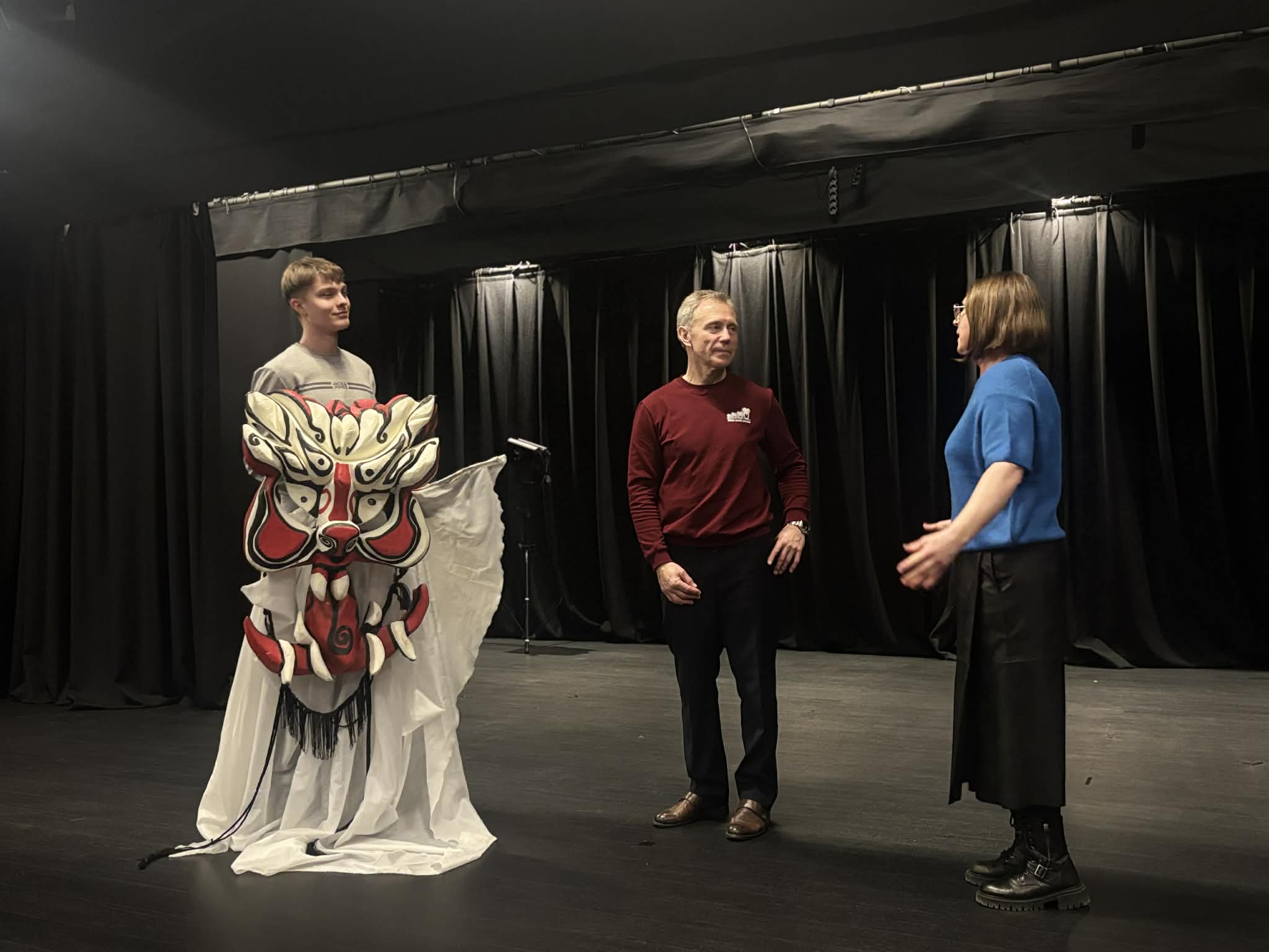 Yra sakoma, kad teatras prasideda nuo rūbinės … Galime patvirtinti – tai tikra tiesa! Vos tik atvykus, mus pasitiko Šilutės kamerinio teatro direktorė Ramunė Kiniulytė, kuri ir įvedė mus į pagrindines teatro patalpas. Vėliau teatro scenografė Jūratė Rinkauskienė pristatė teatrą per jo aplinkos kūrimą, kaukių kūrybos, apšvietimo ir kitus niuansus. Pasirodo, visa tai yra labai reikšminga bet kurio teatro kūrybinė dalis.