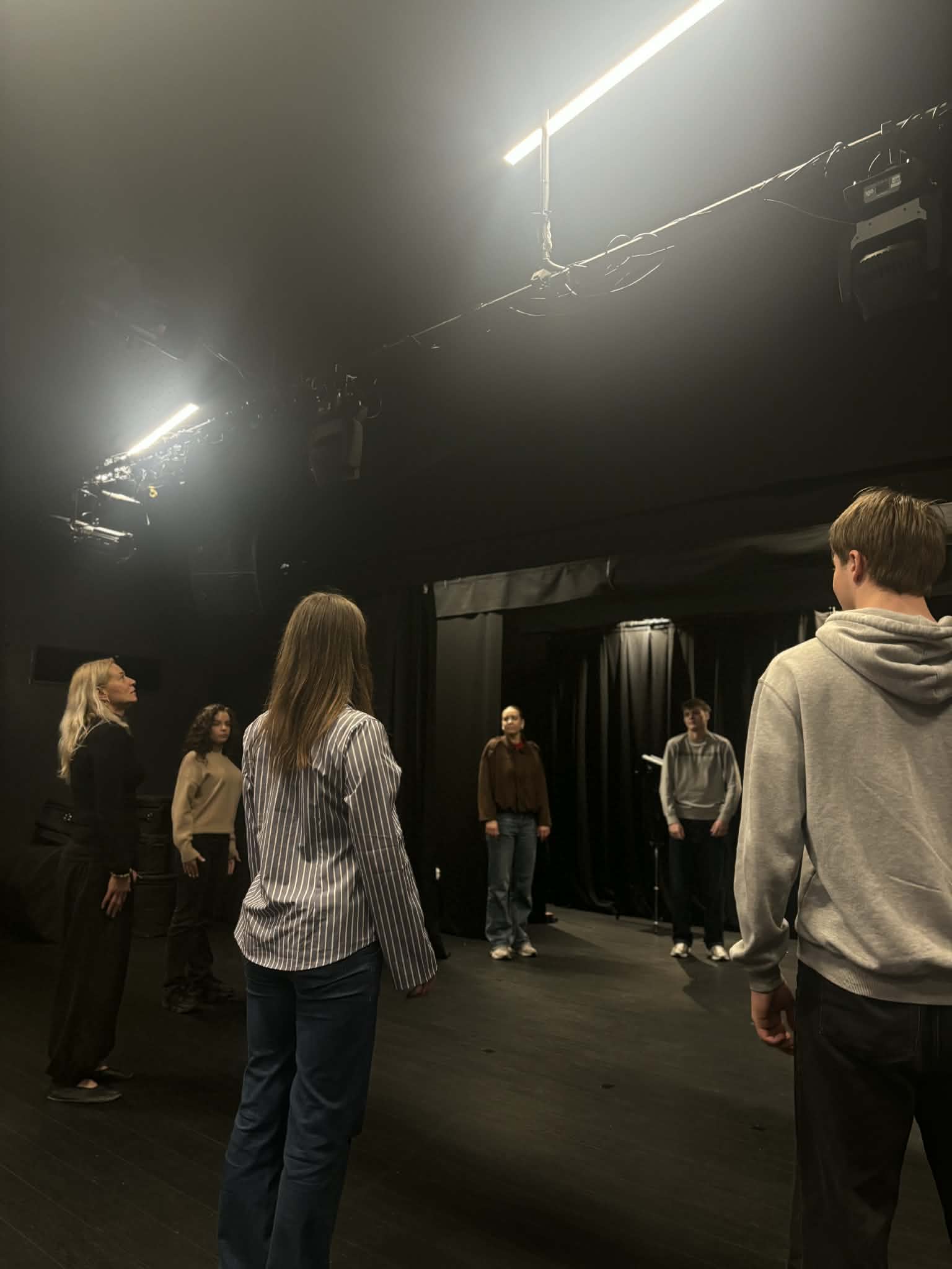 Vėliau viską į savo rankas perėmė aktoriai Alma Rimkevičiūtė, Vygantas Paldauskas ir Evelina Dargytė. Jie parodė mums teatrą, kurio „žiūrovas nemato…“. Aktoriaus diena yra kupina įvairios veiklos, net tam tikrų reikšmingų taisyklių ir ritualų, kuriuos privalu atlikti. Pavyzdžiui – kaip teisingai atlikti kvėpavimo pratimus ir „pažadinti“ savo kūną arba kaip „išlaisvinti“ savo balsą, arba kaip lavinti ritmikos ir judesio suvokimą. Mes kartu su aktoriais stovėjome scenoje ir išbandėme įvairius pratimus. Tai buvo tikra edukacija, kuri apjungė muzikos, choreografijos, teatro elementus.