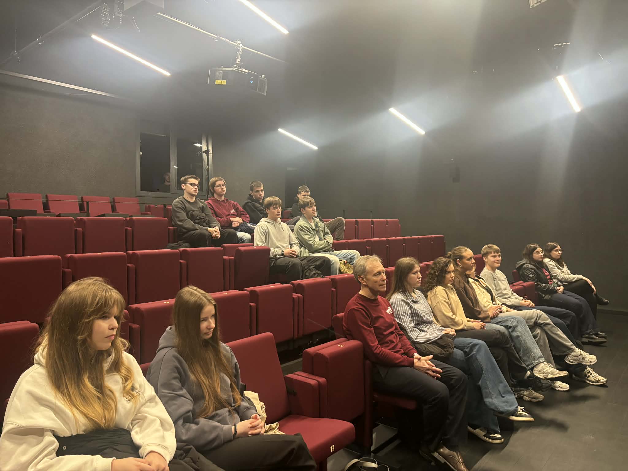 2026 m. kovo 13 d., penktadienį (!!!), mes, Šilutės pirmosios gimnazijos III c klasės mokiniai ir keletas jų bičiulių, aplankėme Šilutės kamerinį dramos teatrą. Turėjome porą tikslų – pasveikinti Šilutės teatralus su artėjančia tarptautine teatro diena (kovo 27 d.) ir susipažinti su teatro gyvenimu, ypač su jaunimo studijos veikla teatre.