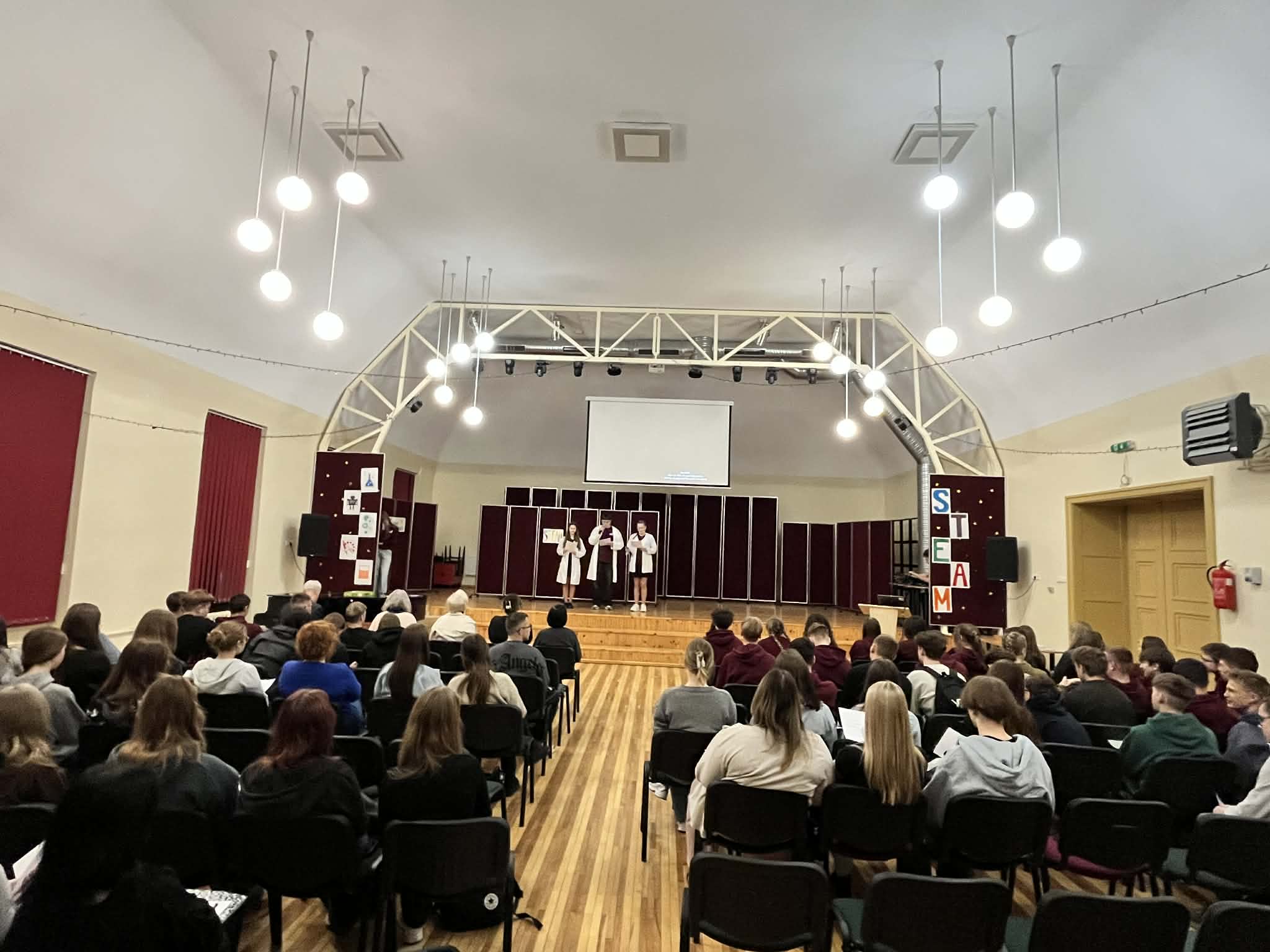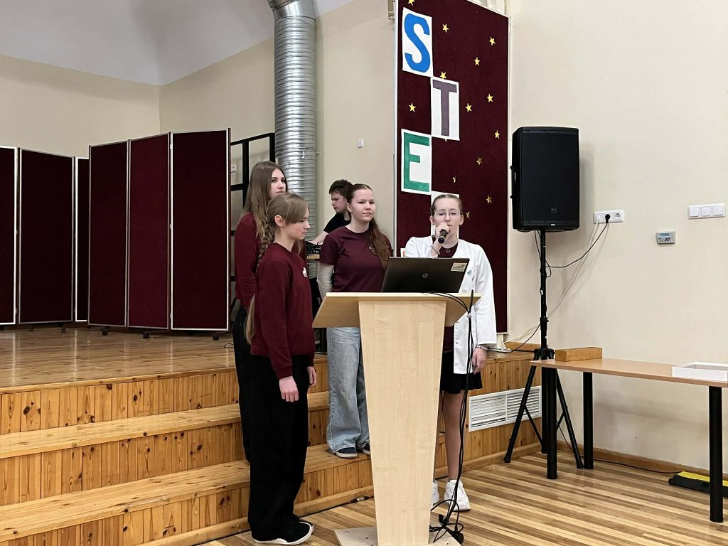 Šiandien mūsų gimnazijoje vyko srautinė pamoka „Eksperimentuoju – mokausi“, skirta I klasių mokiniams. Pamokos metu savo patirtimis ir veiklomis dalijosi I d klasės mokiniai (klasės vadovas Alvydas Ežerinskis). Renginyje jie pristatė, ką veikė ir ko išmoko lankydamiesi STEAM centruose Tauragėje ir Klaipėdoje. Mokiniai pasakojo apie atliktus bandymus, išbandytas veiklas ir tai, kas jiems labiausiai įsiminė. Tai buvo gera proga pirmokams geriau susipažinti su STEAM klasės veikla ir pamatyti, kaip mokymasis gali vykti ne tik klasėje. Pranešimus mokiniai ruošė padedami chemijos mokytojos Danutės Jokšienės, fizikos mokytojo Pranciškaus Viršilo ir biologijos mokytojos Rūtos Mikužytės. Jų pagalba mokiniai galėjo aiškiai ir drąsiai pristatyti savo patirtis. Tarp pristatymų buvo rodomos mokinių sukurtos reklamos, kviečiančios rinktis STEAM klasę. Jos buvo kūrybiškos ir sulaukė daug dėmesio. Taip pat visiems patiko Odrės Valeikės sukurtas filmukas, kuriame užfiksuotos akimirkos iš STEAM veiklų – tiek darbo, tiek laisvalaikio. Renginio vedėjai kvietė pirmokus aktyviai dalyvauti, atsakyti į klausimus ir išbandyti jėgas viktorinoje. Teisingai atsakiusieji buvo apdovanoti prizais, todėl netrūko nei azarto, nei geros nuotaikos. Pamokos pabaigoje mokiniai trumpai pasidalijo savo įspūdžiais. Daugelis džiaugėsi, kad turėjo galimybę išgirsti apie bendraamžių patirtis ir sužinoti daugiau apie STEAM veiklas. Tokios pamokos leidžia mokytis kitaip – įdomiau bei praktiškiau.
